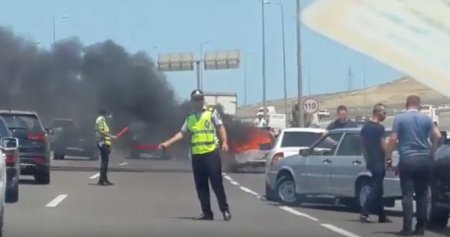 Bakı-Ələt yolunda qəza: avtomobil yandı – VİDEO