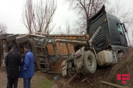 Yük avtomobili qaz xəttinin üzərinə aşdı