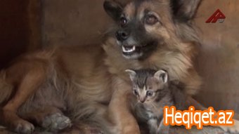 Zaqatalada pişik balalarına it analıq edir
