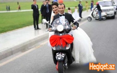 Bəylə gəlin restorana motosikletlə getdi - Bakıda