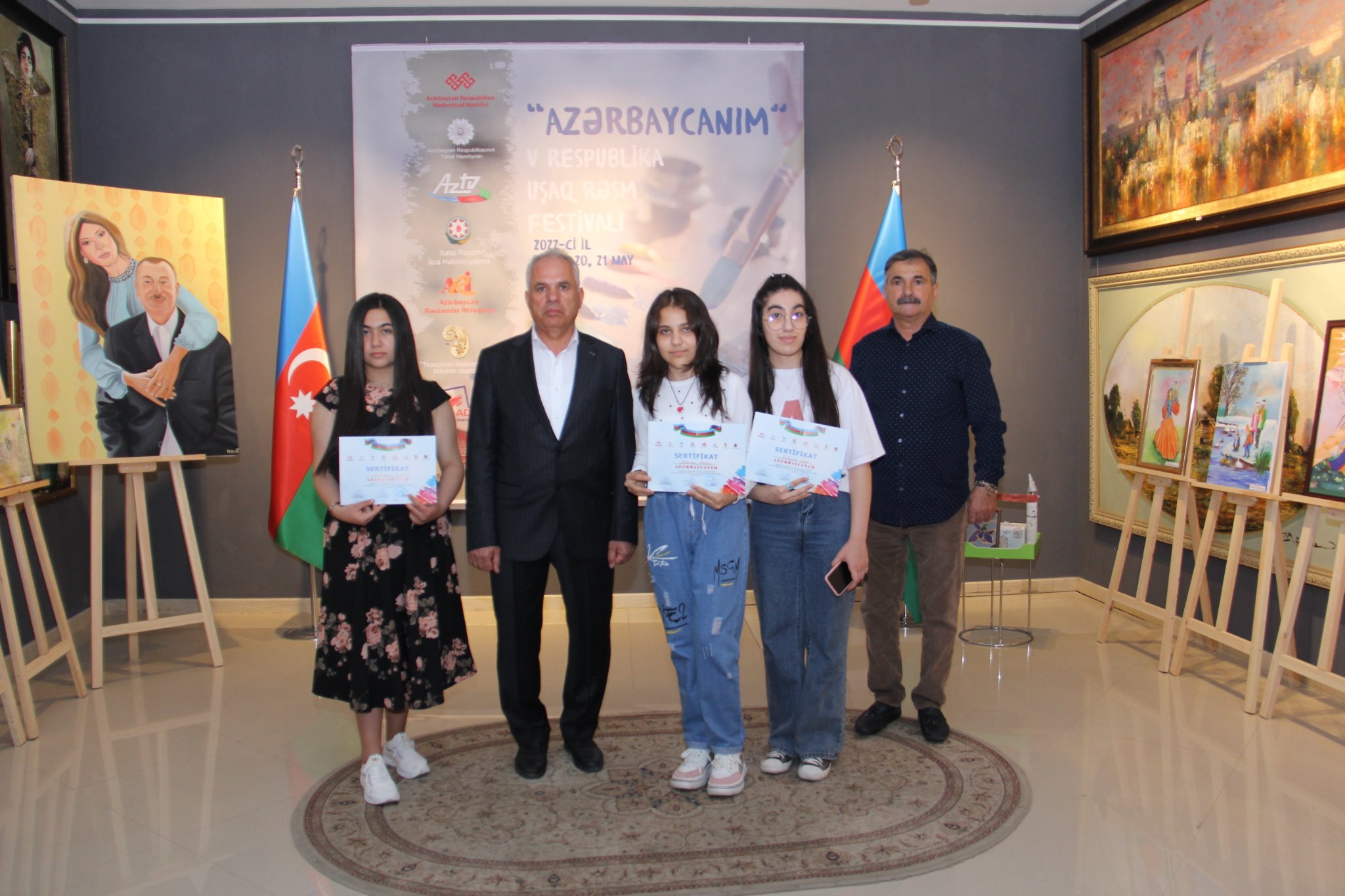 Çap et Sərgini giriş sözü iləXətai Sənət Mərkəzinin direktoru Zahid Əvəzov açaraq,öz ürək sözlərini balaca rəssamlarla bölüşdü.Tədbirdə həmçinin, Azərbaycan Rəssamlar İttifaqının üzvü,Xətai Yaradıcılıq Studiyasının müəllimi Gündüz Hunnar və Rəssam Zaur Mirzəyev çıxış etdilər. Sərgi iştirakçıları serifikatla təltif olundular. Əsərləri elektron kataloqda yerləşdirilmiş müəlliflərin əsərlər sərgilənir (siyahı linkdə qeyd olunub) https://www.yumpu.com/xx/document/read/66828814/azerbaycanim-v-resm-festivali-2022 Tədbirdə ən azı 3 əsəri ilə təmsil olunan tədris mərkəzləri (siyahı linkdə qeyd olunub) https://www.yumpu.com/xx/document/read/66828863/tdbird-n-az-3-sri-il-tmsil-olunan-tdris-mrkzlri-tskkurnam-il-mukafatlandrlacaq təşəkkürnamə ilə mükafatlandırılacaq. Xatırladaq ki,sərgilərdən seçilmiş üç yaş qrupundan hər yaş qrupu üzrə 10 ən yaxşı əsərin müəllifi festivala dəvət olunacaq. Həmçinin sərgini Xətai Sənət Mərkəzi youtube kanalı https://www.youtube.com/watch?v=vQWCp-Fg5K0 üzərindən də izləyə bilirsiniz. Tədbirin gedişini Xətai Sənət Mərkəzinin sosial media hesabları (facebook-Xetaisenetmerkezi,instagram-@xetaisenetmerkezi) və Azərbaycan Dövlət Rəsm Qalereyası sosial media hesabları, (facebook - ADRQalereya.az, instagram - @azgallery.az) həmçinin qalereyanın internet saytı (www.azgallery.az) vasitəsilə izləmək mümkün olacaq. Mətbuat dəstəyi: Azərbaycan Televiziya və Radio Verilişləri Qapalı Səhmdar Cəmiyyəti, Azərtac, Mədəniyyət qəzeti, Azpress.az, Milli.az, Trend news agency, Day.az, Edumap, Eduonline.az, Frame.az, xsm.az və Tanışolaq jurnalı Tədbirin dəstəkçisi Hollandiyanın boya markası olan “Royal&Talens”inArtcreation brendidir. Reytinq: